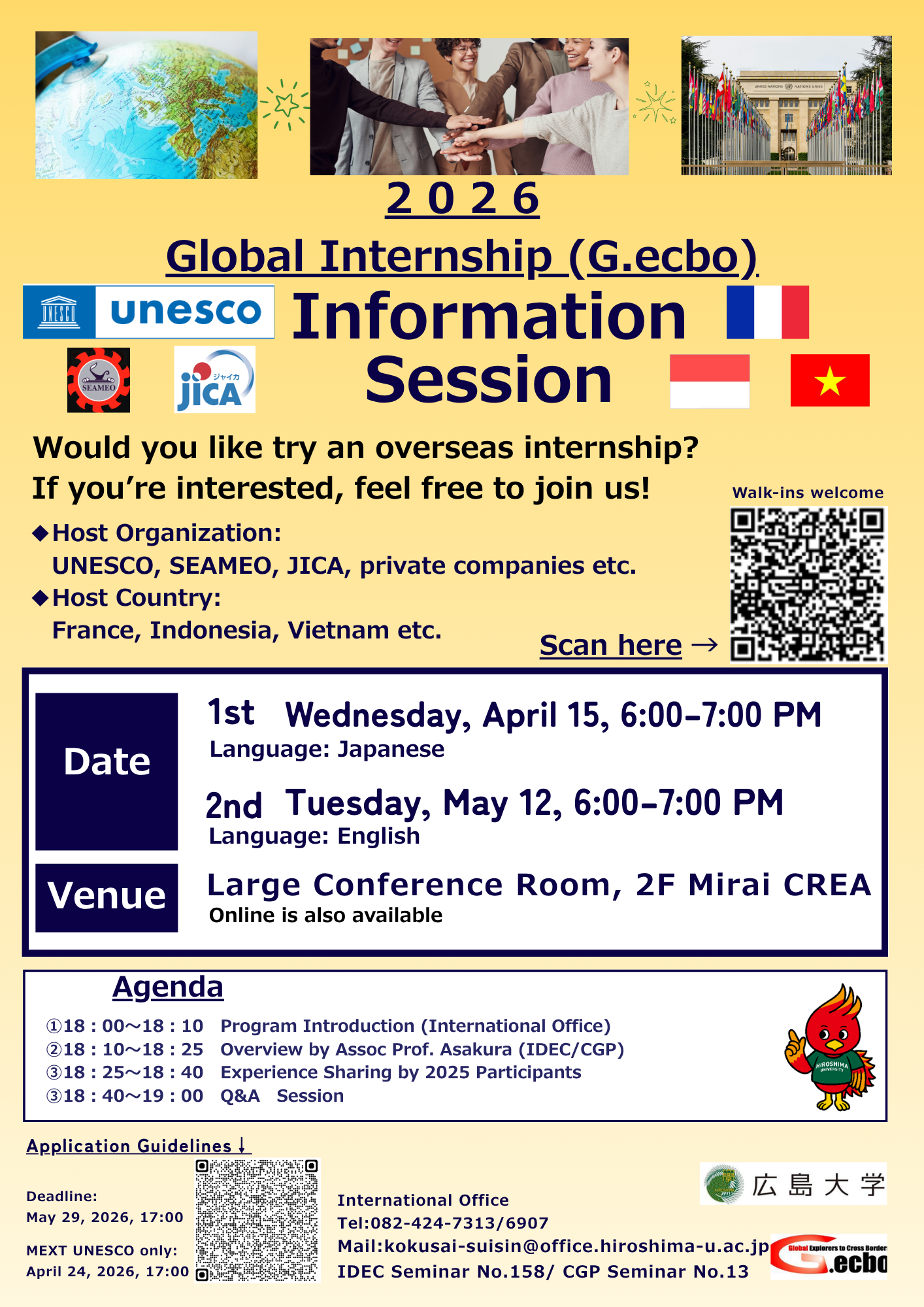 Information sessions for the 2026 Global Internship Program will be held on the dates listed below.
