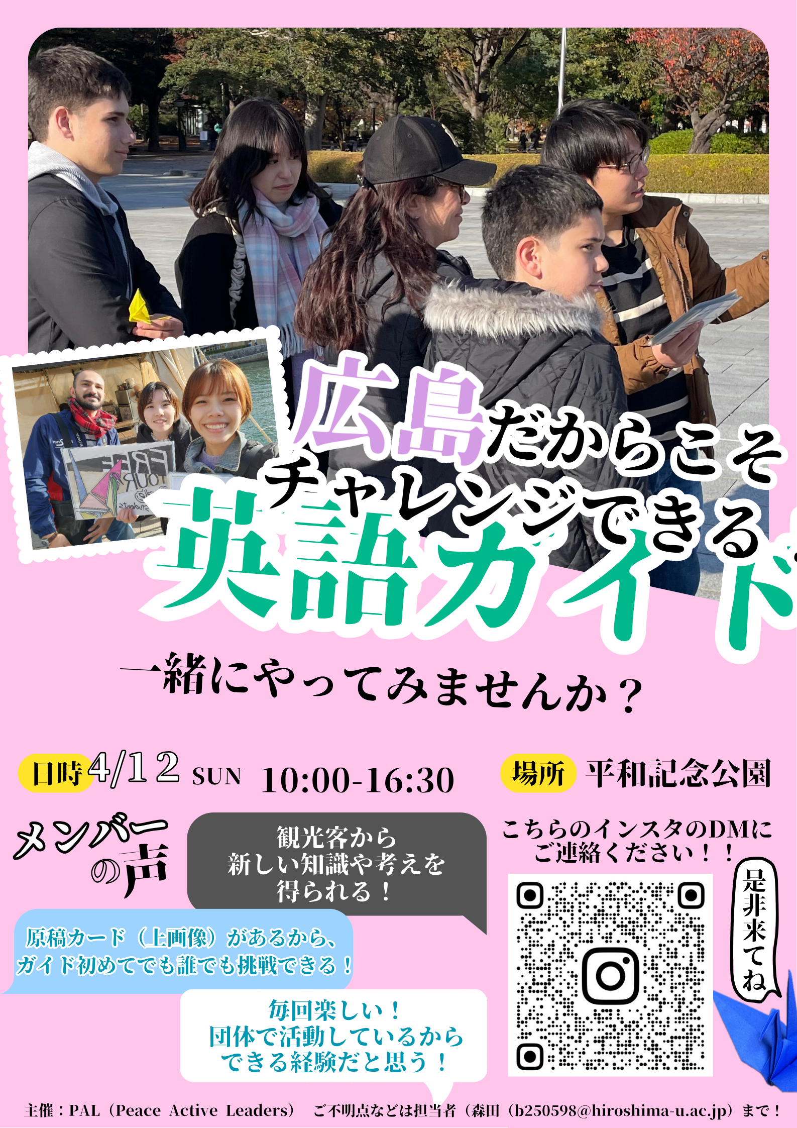 お問い合わせ:hitomusubi.tour@gmail.com - 広島だからこそ体験できる!英語で観光ガイドを一緒にしてみませんか?【PAL(Peace Active Leaders)】