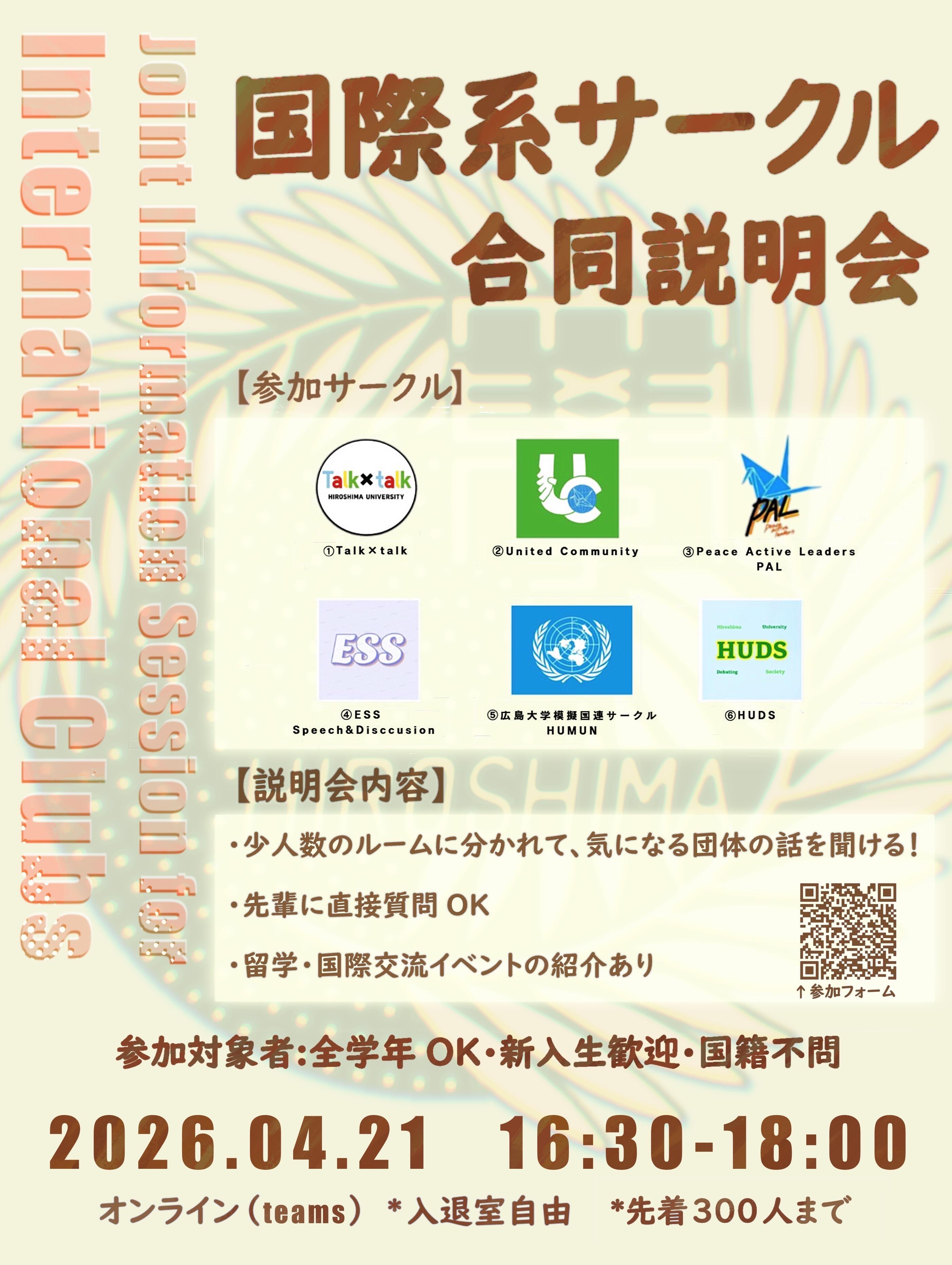 広島大学の国際系サークルが集まってオンラインで説明会を開催します。